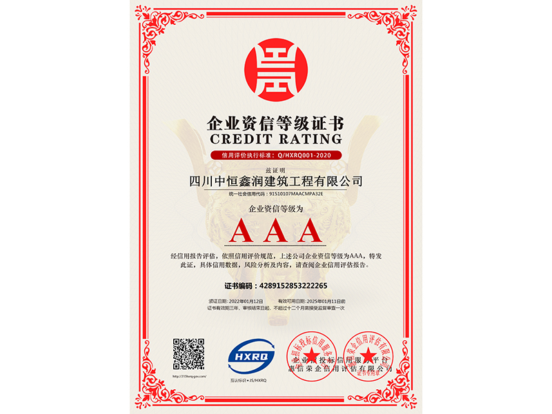四川中恒鑫润建筑工程有限公司-企业信用等级-新版