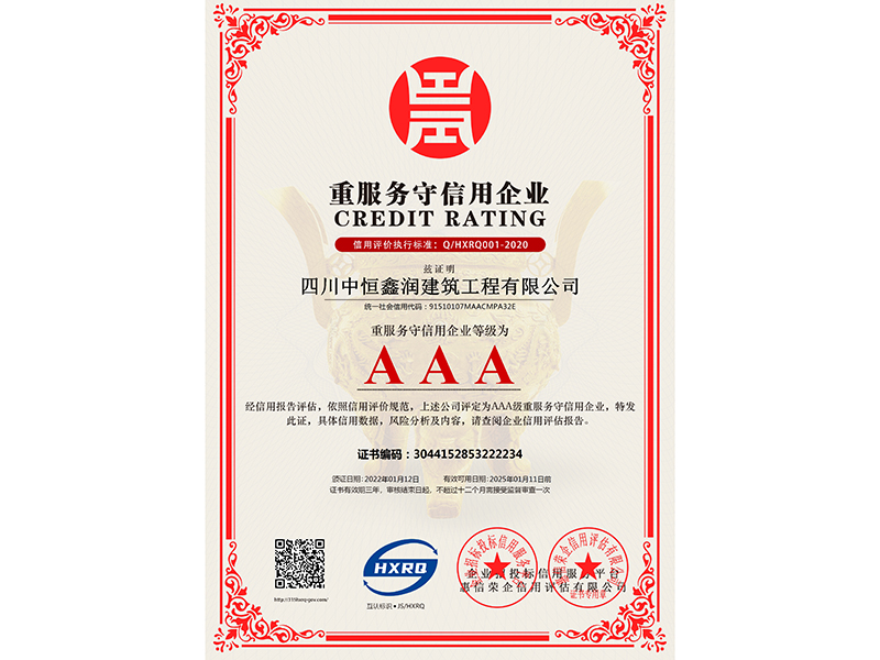 四川中恒鑫润建筑工程有限公司-重服务守信用企业-新版