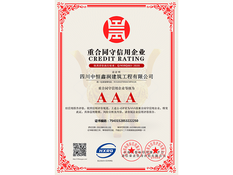 四川中恒鑫润建筑工程有限公司-重合同守信用企业-新版